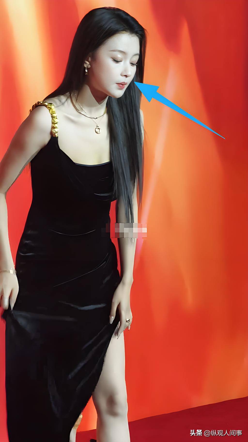 之后她又换了一条黑色开叉裙,拍照时还特意用手拉高裙摆,露出大腿,脸上带着俏皮的笑。这小心思,大家一看就懂,无非是想多赚几个镜头。