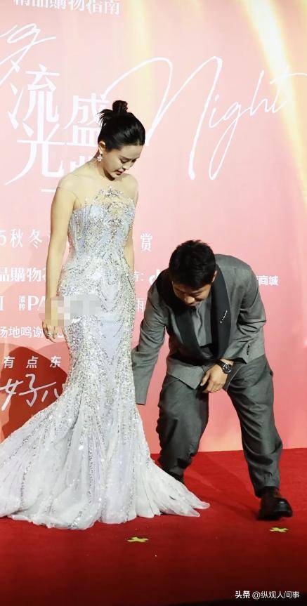 不过两口子全程牵着手,非常恩爱。上台时佟大为还蹲下来帮老婆整理裙摆,细节见真情,感情是真的好。