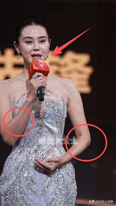 但镜头一拉近,就有点暴露状态了:脸型显得有点宽,笑起来牙花抢镜,皮肤也看得出一些细纹,不太像她这个年纪该有的样子。尤其是嘴巴部分,有点微龅,成了颜值的减分项。